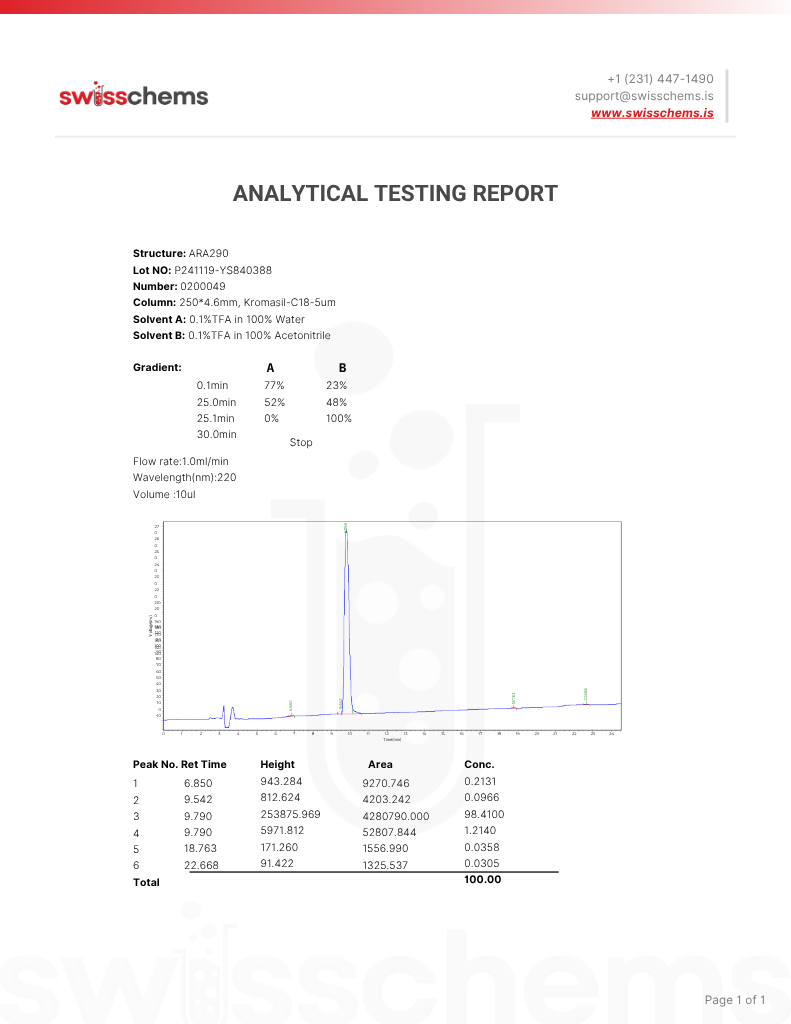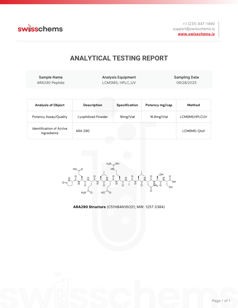 Cibinitide (ARA-290) is a synthetic peptide compound engineered for laboratory research. Studies indicate specific interactions with molecular pathways in experimental models, with particular focus on cellular signaling mechanisms.